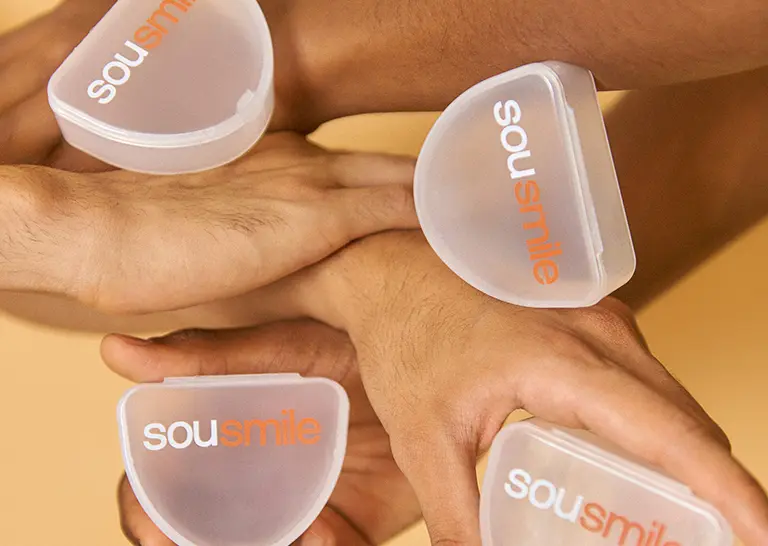 Com o aparelho invisível da SouSmile, você não precisa de bráquetes para alinhar os dentes: ele substitui o fixo em casos de alinhamento, espaçamento e mordida. Muito mais confortável e prático para seu dia a dia.